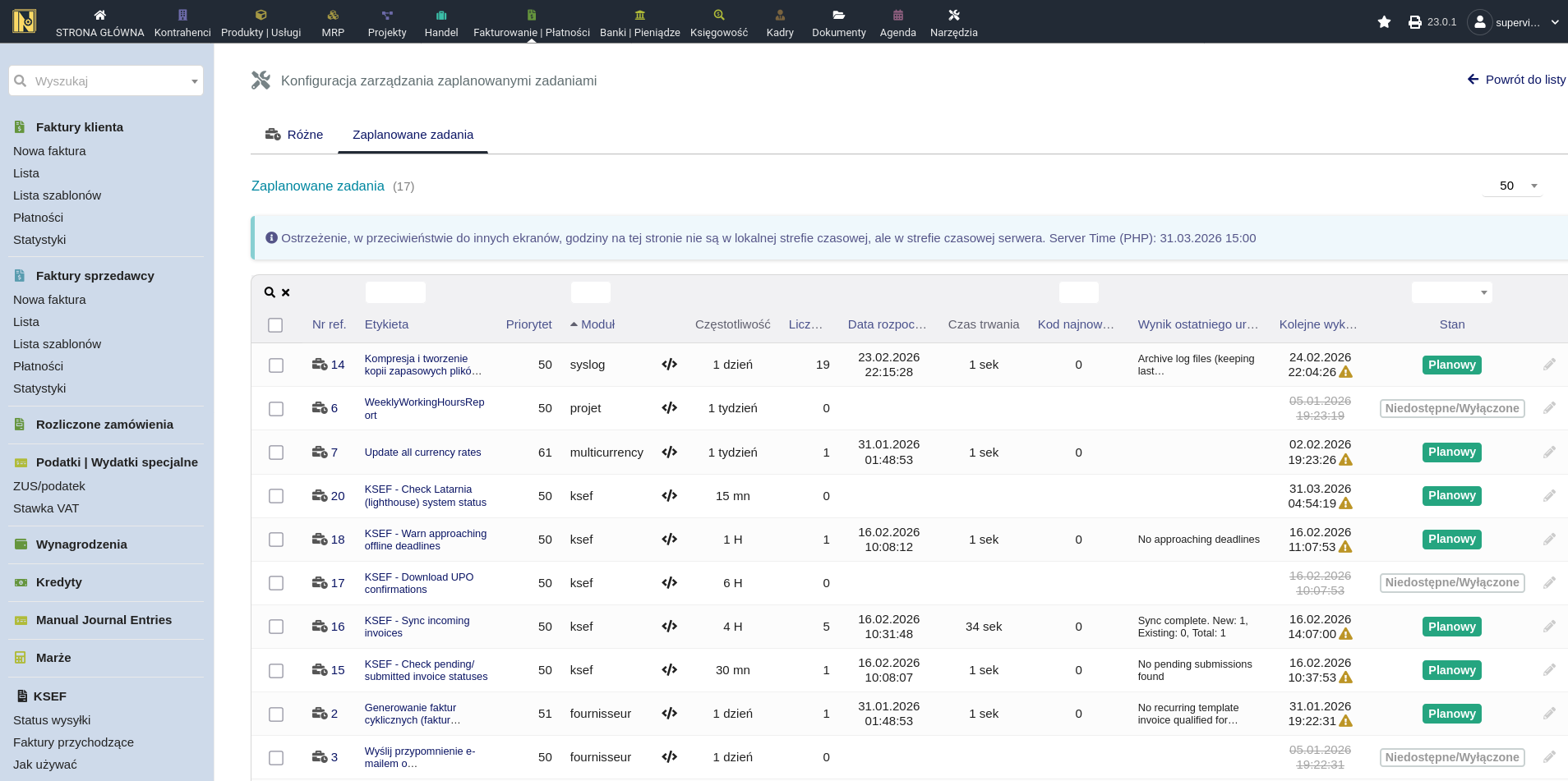 Jeśli zaplanowane zadania już działają dla innych modułów Dolibarr, zadania KSeF działają automatycznie - nie jest potrzebna dodatkowa konfiguracja systemowa.