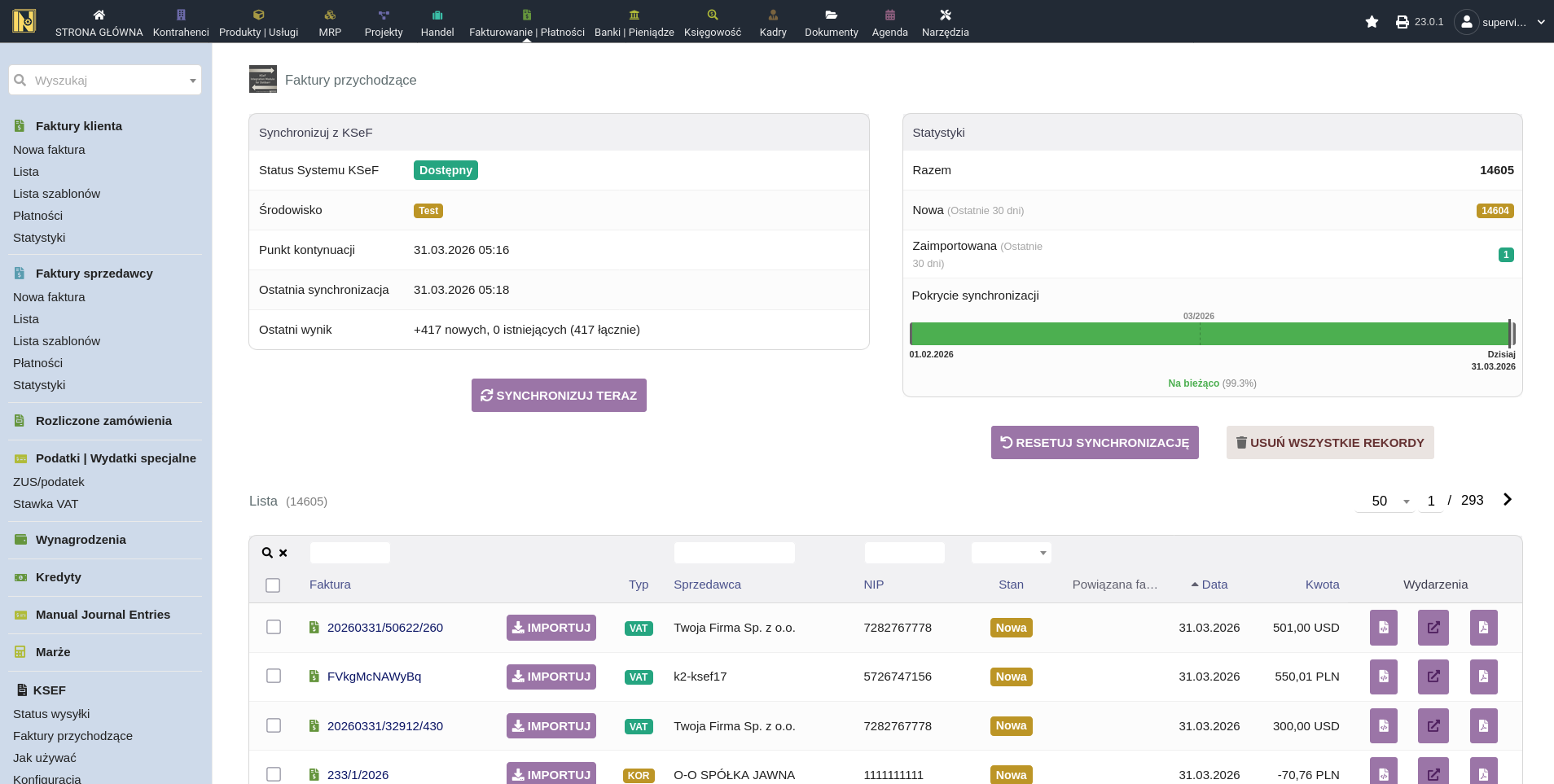 Synchronizacja faktur przychodzących